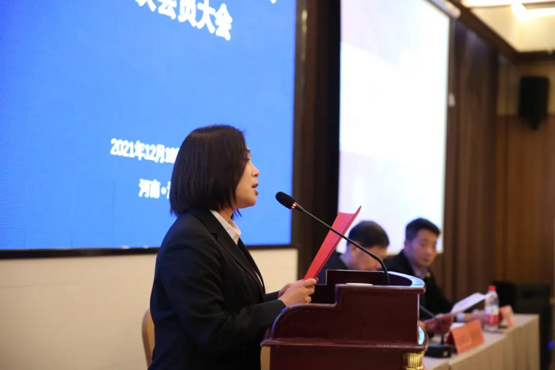 河南寶琪車輛鑒定評估技術有限公司負責人孟迎飛向大會作《第一屆理事會工作報告》。